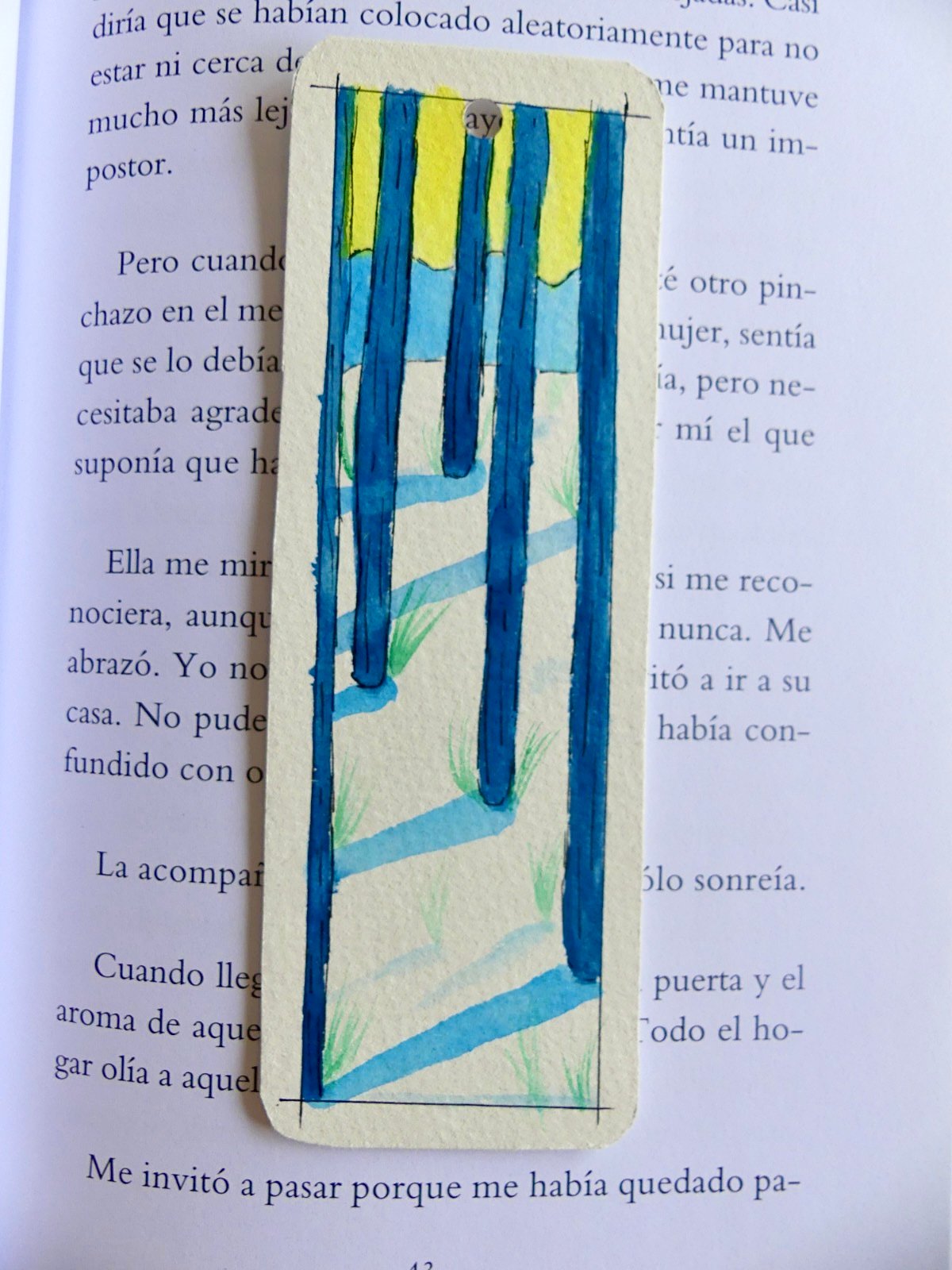 Sumérgete en la serenidad de este bosque minimalista pintado a mano, donde las sombras proyectadas y los trazos vibrantes invitan a la calma en cada lectura. Una pieza artesanal única que transforma tu libro favorito en una pequeña galería de arte personal. Esta pieza artesanal de SegoirisArt está creada con mimo para ofrecer un detalle único, lleno de estilo y personalidad, ideal para regalar o disfrutar en cada momento especial.